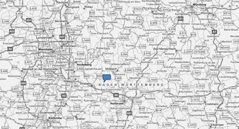 Wir liegen verkehrsgünstig an der West-Ost Verbindung Autobahn A6 in Baden-Württemberg ca. 10 km von der